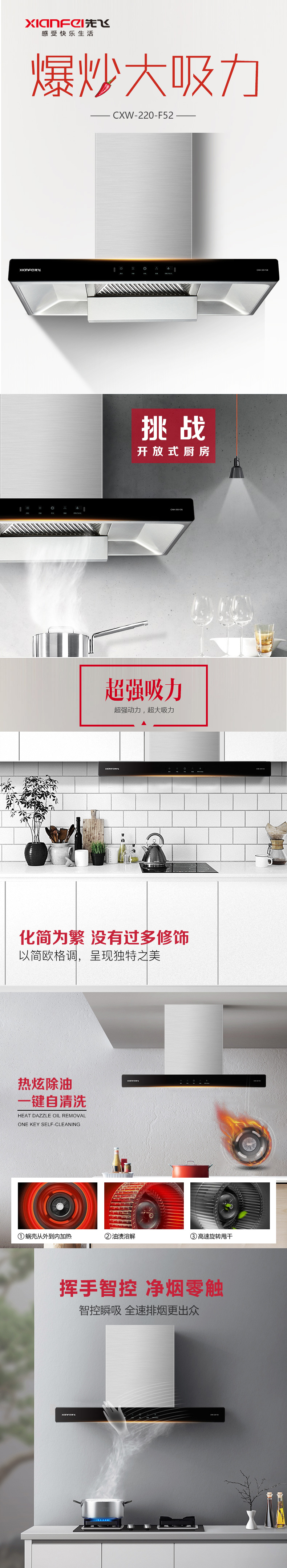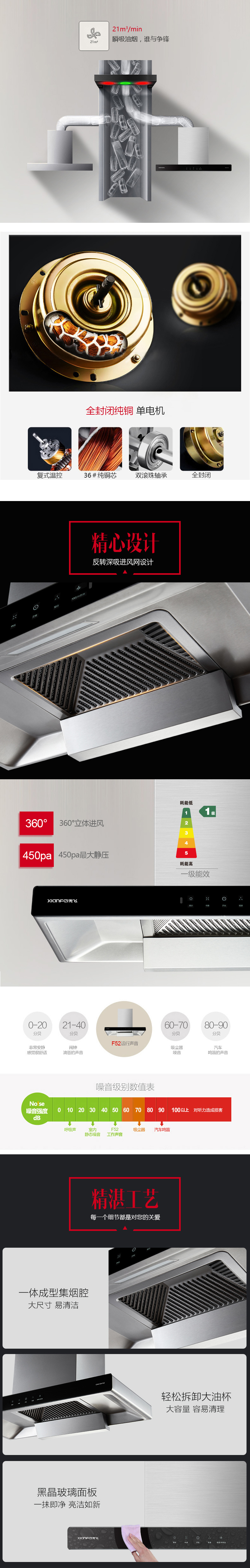 超強動力 超大吸力 以簡歐格調(diào) 呈現(xiàn)獨特之美 熱炫除油 一鍵自清洗 揮手智控 凈煙零觸 反轉(zhuǎn)深吸進風(fēng)網(wǎng)設(shè)計 黑晶玻璃面板 一抹即靜 亮潔如新 360°立體進風(fēng) 440pa最大靜壓