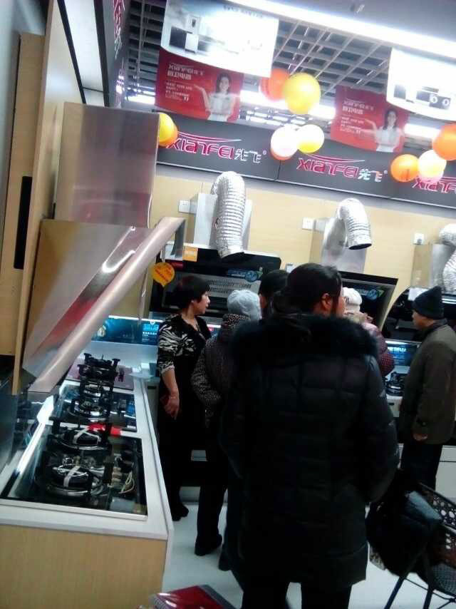 2014年12月26日,甘肅省嘉峪關(guān)市的蘇寧旗艦店重裝開業(yè)!剛剛過完圣誕的人們?nèi)祟^攢動(dòng),團(tuán)團(tuán)圍擠在先飛展柜旁,熱火朝天地選購先飛廚衛(wèi)產(chǎn)品。