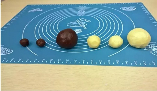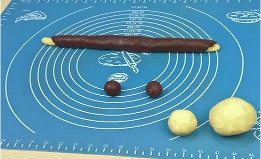 4.原味面團(tuán)分成3份,分別為25克、25克、80克;可可面團(tuán)分成3份,分別為104克、8克、8克;(圖4)