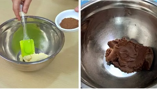 3.115克面團(tuán)加入5克可可粉揉成面團(tuán);(圖3)