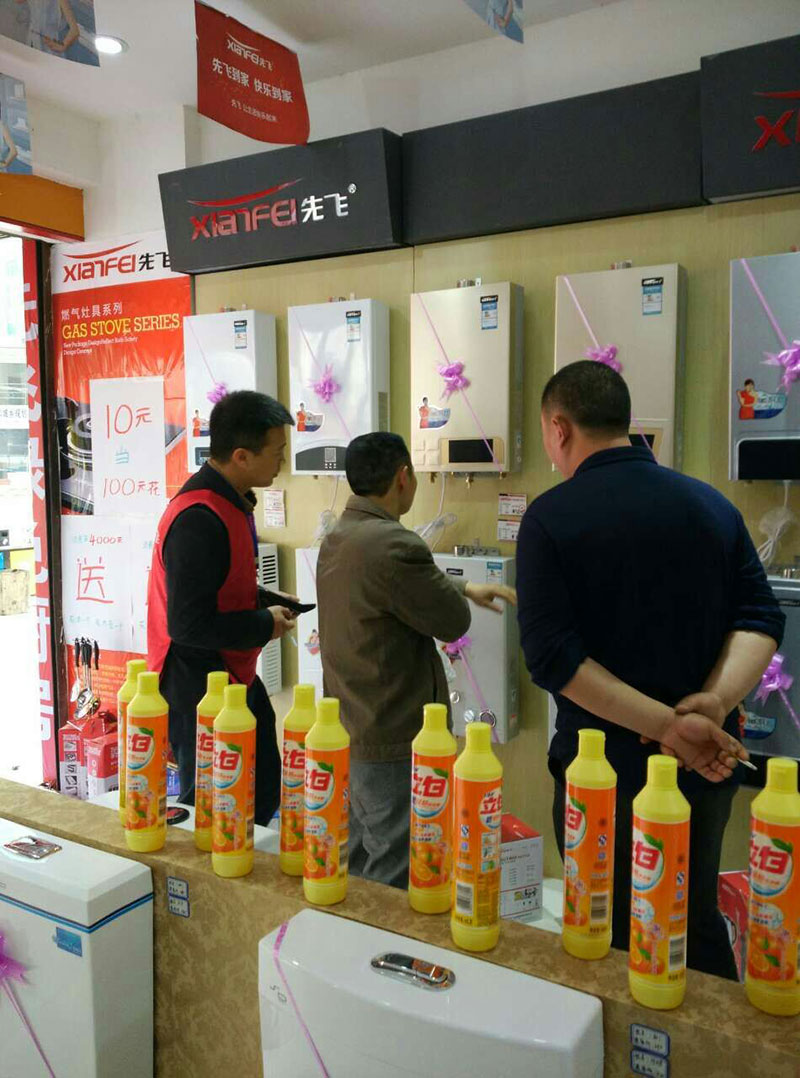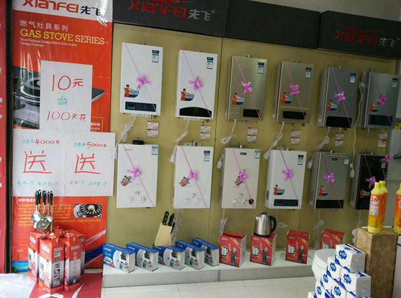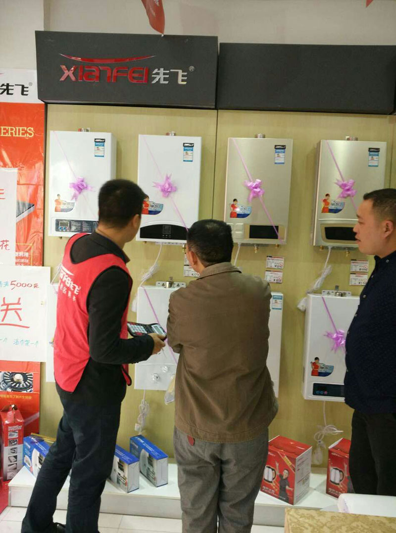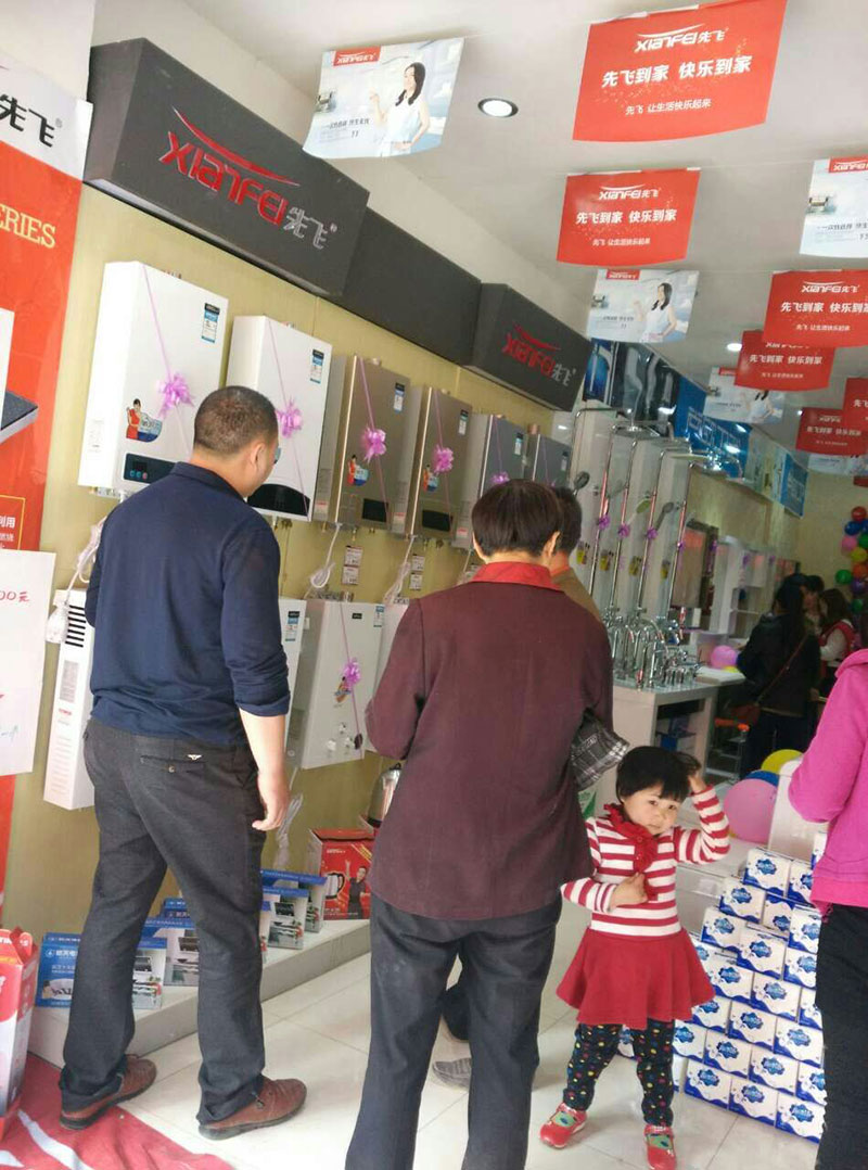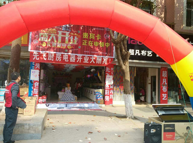 蓬安先飛采用了先飛工廠2015款的標(biāo)準(zhǔn)展架,豐富的煙機(jī),灶具和消毒柜組合,燃?xì)鉄崴鹘M合,全面的展示了先飛系列產(chǎn)品形象。喜慶的汽球,彩帶,先飛吊旗等物料,以及品類繁多的贈品更是錦上添花!