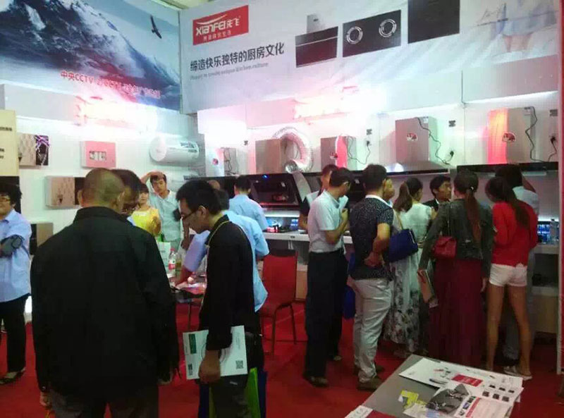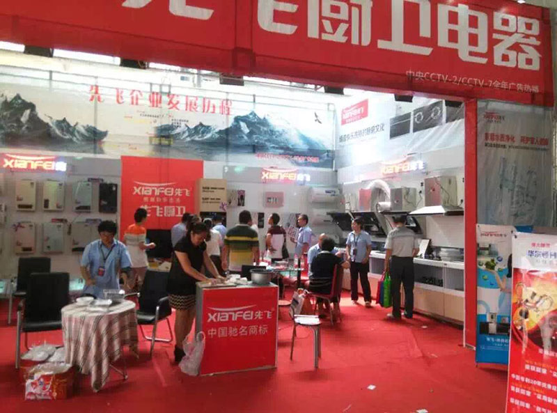 2015年9月4日,中原國(guó)際家電博覽會(huì)在鄭州市國(guó)際博覽中心隆重開幕!先飛展廳位于大會(huì)會(huì)場(chǎng)入口,正是人流必經(jīng)之地,也是先飛廚衛(wèi)多次參會(huì)專用展廳位置。同時(shí),在會(huì)場(chǎng)外布置8米高的噴繪廣告以及迎風(fēng)飄飄的大量刀旗,宣傳氣場(chǎng)強(qiáng)大!