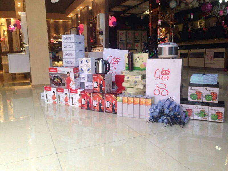 犍為先飛利用自己店面品類(lèi)多,面積大的特點(diǎn),廚房電器綜合衛(wèi)浴,燈具聯(lián)合促銷(xiāo),產(chǎn)品上都精心的做了點(diǎn)綴?;顒?dòng)當(dāng)天鑼鼓喧天,腰鼓助興,氣場(chǎng)強(qiáng)大!
