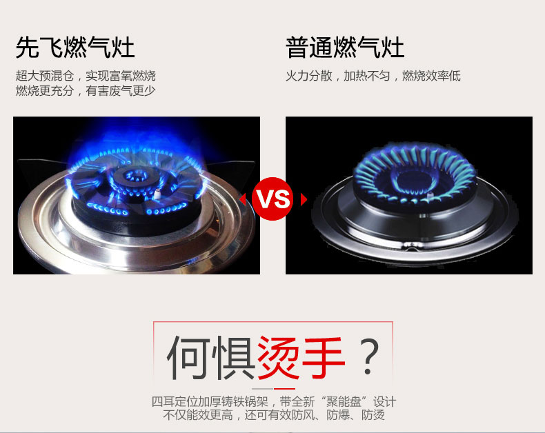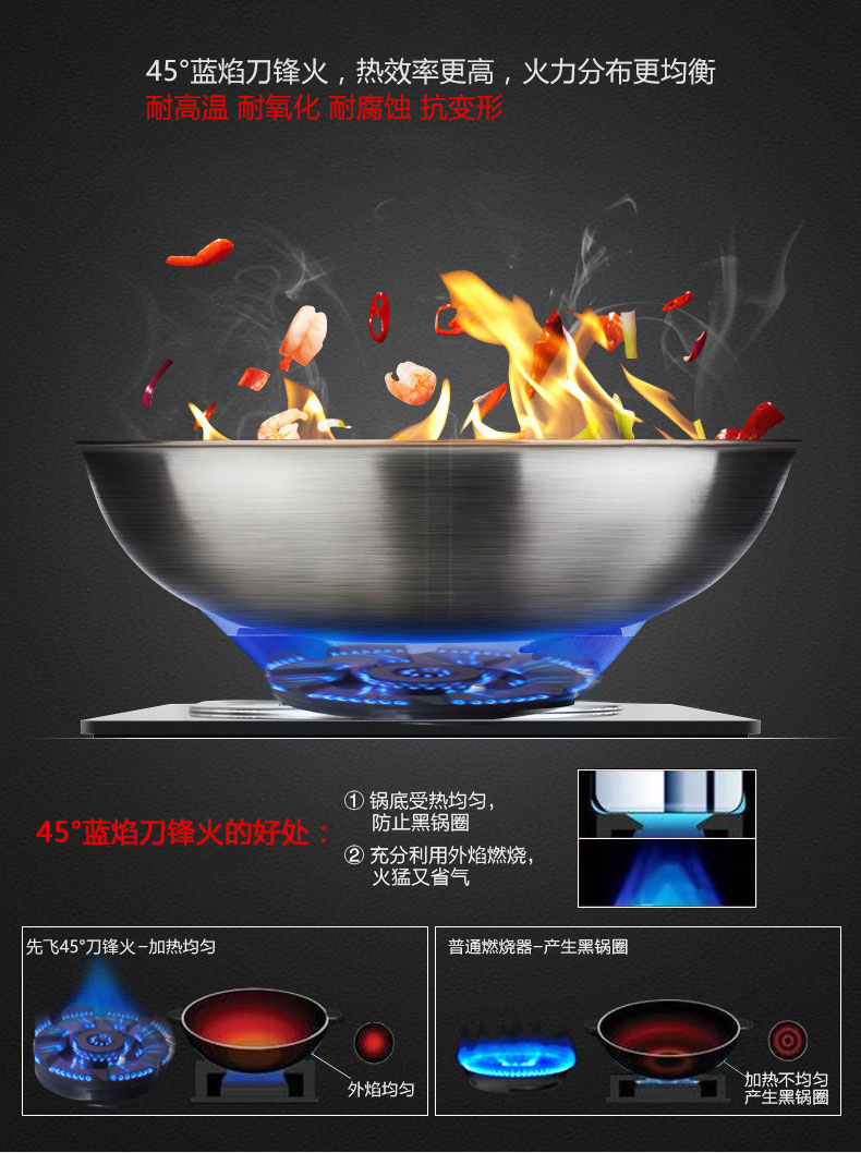 編者按:先飛灶具“猛火高效聚能盤”設(shè)計(jì),不僅可有效提升能效等級(jí),有效防風(fēng)與節(jié)能環(huán)保,而且使得面板溫度從200℃以上,直接降至40℃左右,面板與旋鈕再已不燙手了,玻璃面板爆板概率也從千分率直接下降到萬(wàn)分率。