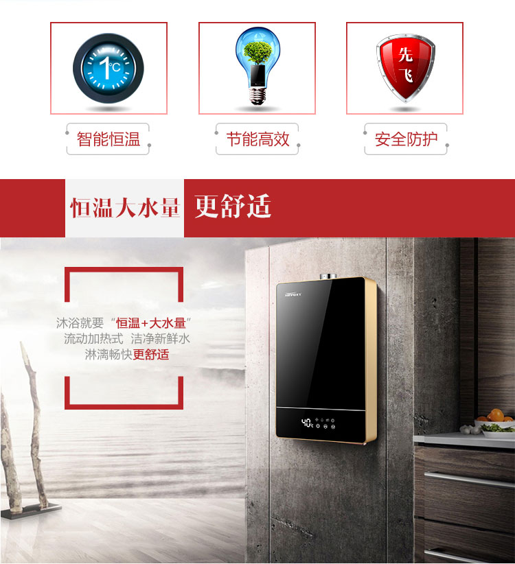 編者按:先飛公司榮獲2015年度燃氣熱水器十大品牌,那么先飛燃氣熱水器究竟有何獨到之秘呢?下面讓我們一起分享先飛智能恒溫燃氣熱水器HR13產(chǎn)品介紹吧!