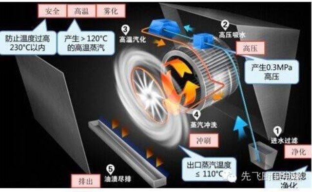 最后,讓我們一起回顧一下先飛蒸汽清洗煙機(jī)的五大賣點(diǎn)吧: