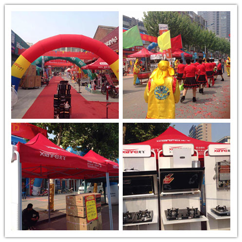 (2)形象展示物料:促銷信息性不強,偏重于氛圍裝點營造的物料;例如帳篷、拱門、太陽傘、地毯、氣球、促銷臺、彩帶、彩旗、氣模等;