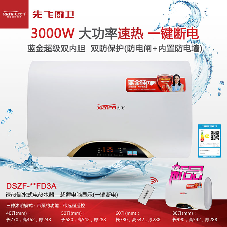 速熱儲水式電熱水器--超薄電腦顯示(一鍵斷電)